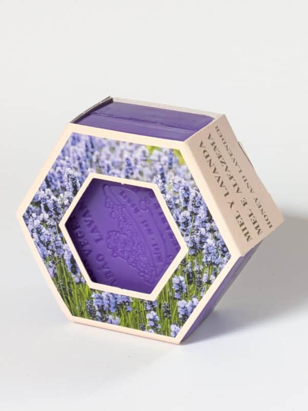 Jabón con Miel y un delicioso y relajante perfume de Lavanda.